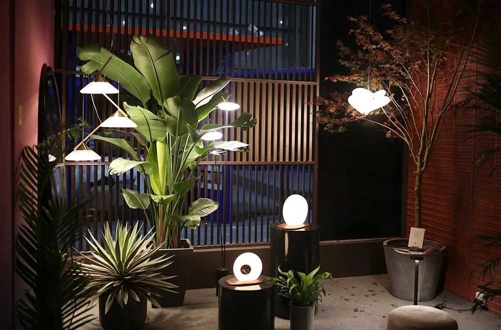 获奖的灯具们是现场的点睛之笔。。展馆入门右手边,,是曾拿下2019年度法国Muuuz国际设计大奖的方寸壁灯。。通过光在不同形态上的表达,,形成虚实结合的「墙」,,,是打卡出片的好点位。。