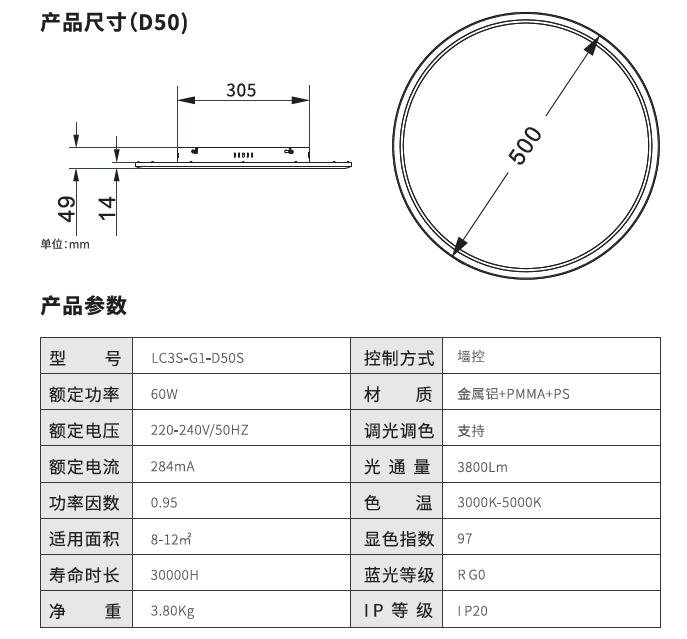 C2护眼吸顶灯-圆形D50-M版